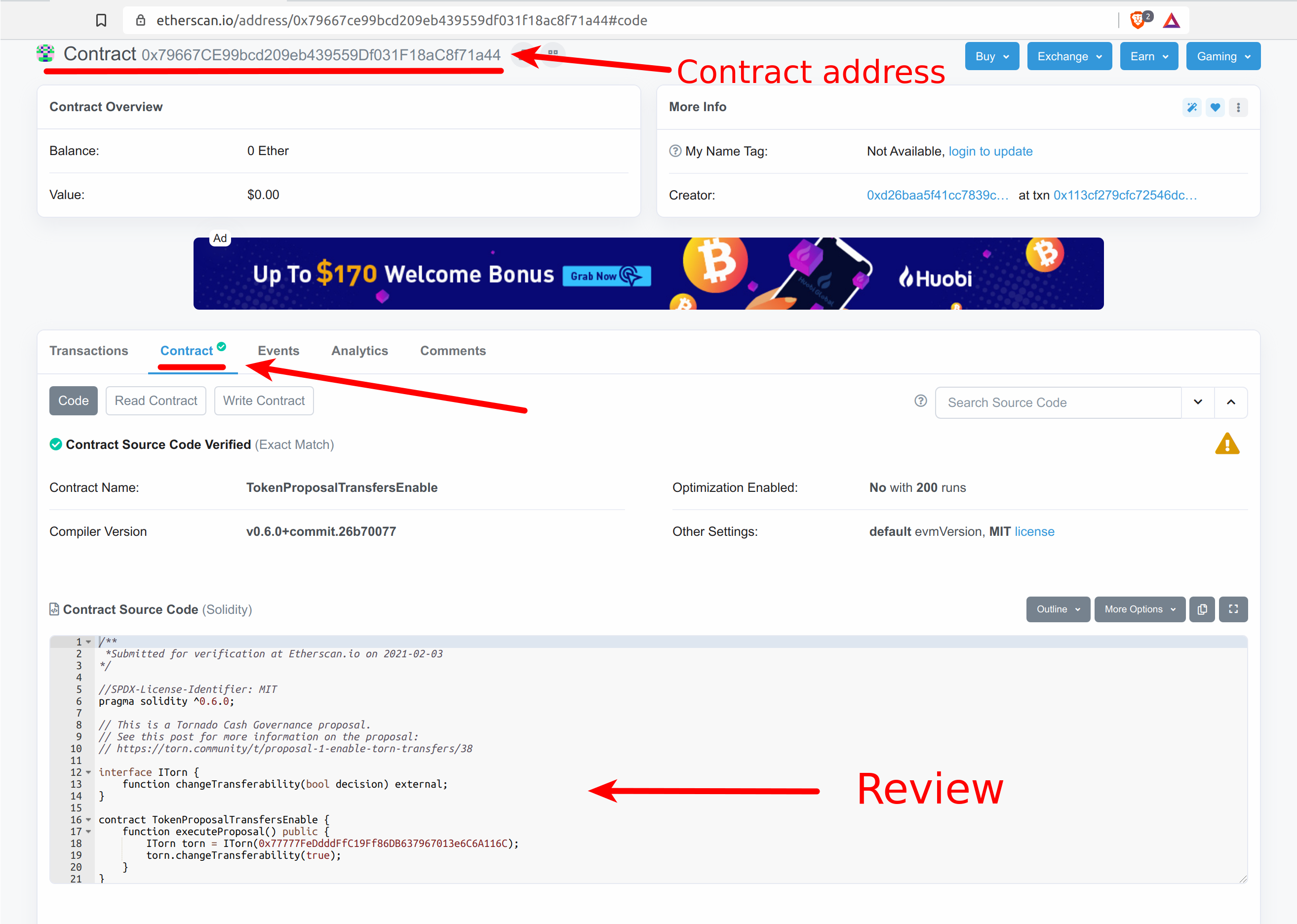 To allow easy auditing of the proposals execution and ensure the highest possibility for your proposal to win consensus, bytecode should be verified on Etherscan using the contract source code.